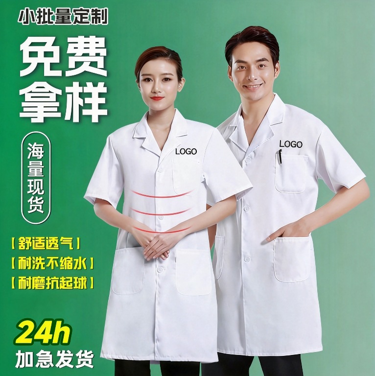 Baju kerja putih gaun disesuaikan LOGO cetak pakaian dokter perawat apotek pakaian ramping salon kecantikan makanan pabrik pakaian eksperimental