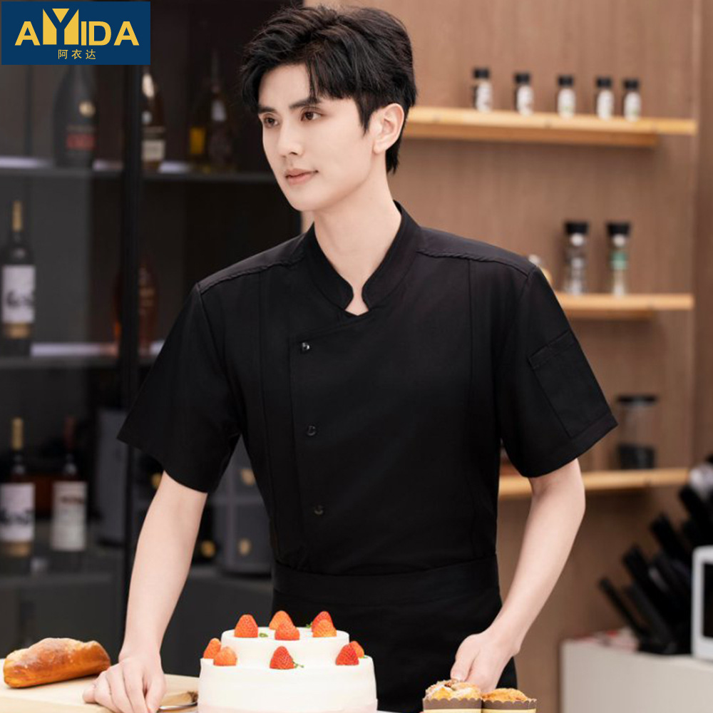 Pakaian Kerja Koki Warna Polos Pakaian Kerja Pria Model Tipis Musim Panas Pakaian Kerja Dapur Restoran Logo Lengan Pendek