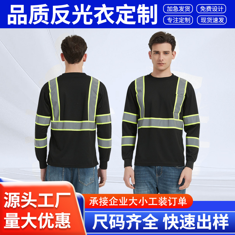 Kaos Oblong Strip Reflektif Pakaian Kerja Konstruksi Keselamatan Luar Ruangan Kaos Oblong Kecepatan Penyerap Keringat