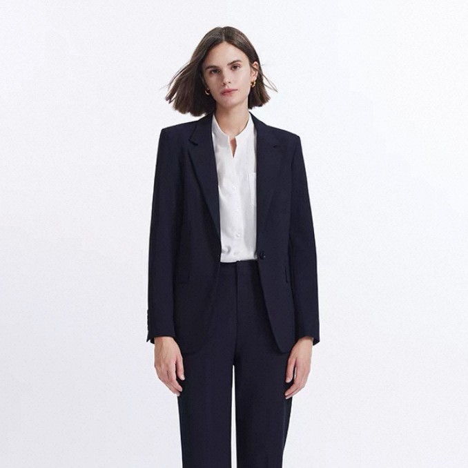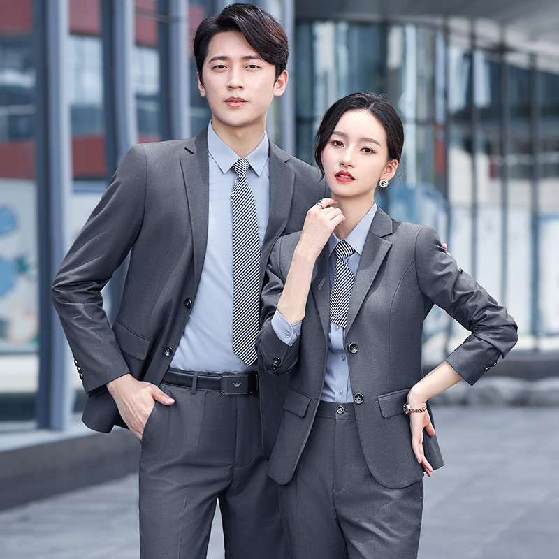 Pakaian bisnis pria dan wanita, setelan baju kerja yang sama, pakaian formal bank tebal musim gugur dan musim dingin