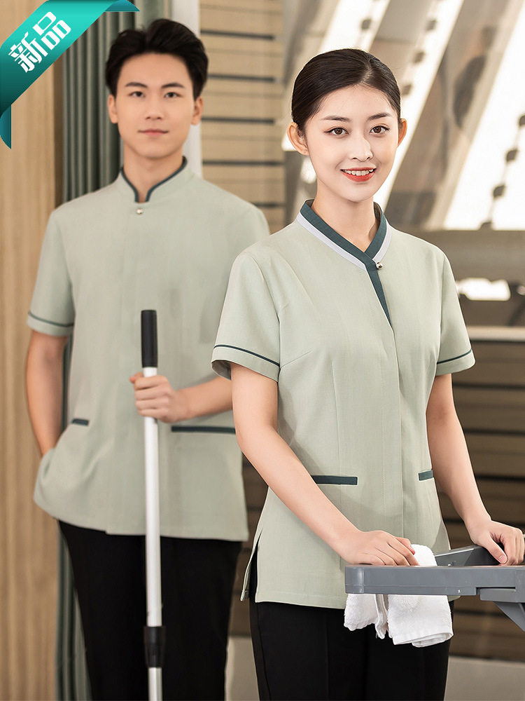 Pakaian kerja pembersih lengan pendek pria dan wanita, properti pembersih hotel kamar tamu bibi pafu seragam musim panas