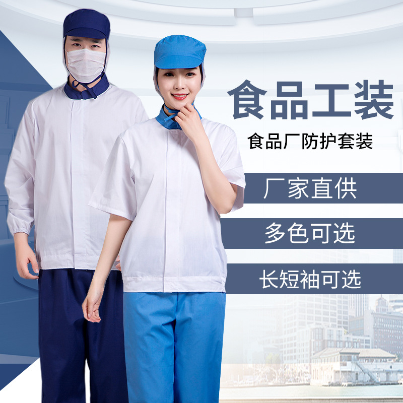 Pakaian kerja kerah tegak lengan pendek, pakaian bekerja makanan bengkel bertudung pria dan wanita bercetak logo pakaian pabrik makanan