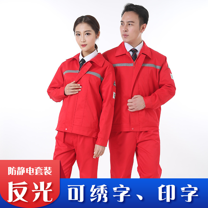 Pakaian kerja anti statis, lengan panjang, anti statis, pakaian kerja pria dan wanita, bengkel, stasiun gas, strip reflektif, pakaian pelindung kerja, grosir, perkakas, cetak, logo bordir