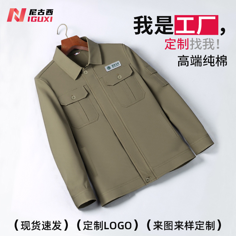 Setelan pakaian kerja pria lengan panjang, pakaian bengkel, baju pabrik, lengan panjang, kustom, tahan aus, pakaian perbaikan otomatis