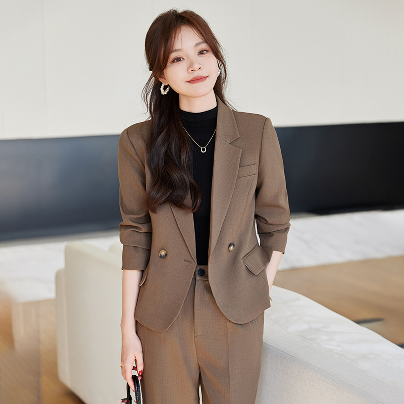 Qiguniang setelan pakaian kerja wanita, jaket tebal kasual elegan modis musim gugur dan musim dingin