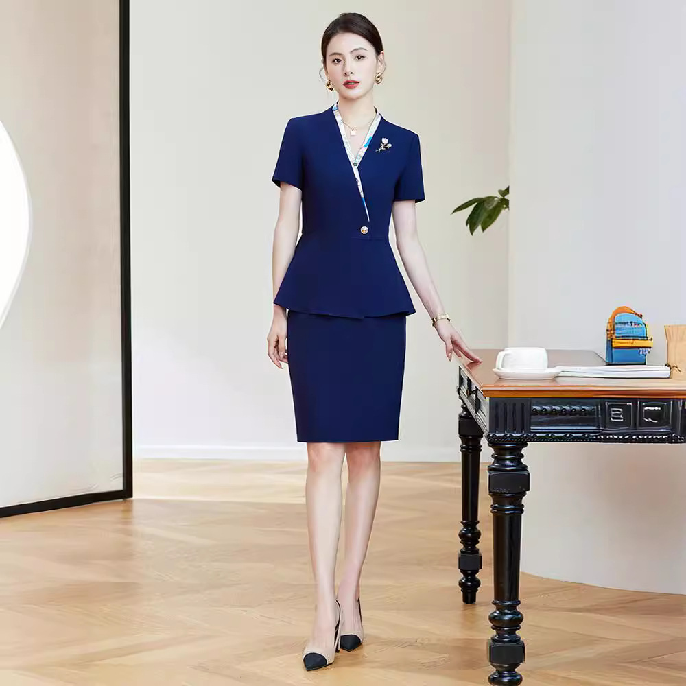 Pakaian kerja tipis musim panas wanita setelan profesional hotel meja depan penjualan basis perhiasan toko perhiasan lengan pendek musim panas 2024