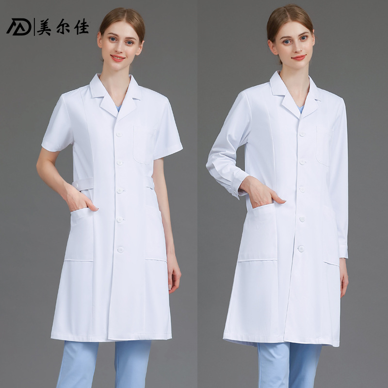 Pabrik grosir gaun putih overall wanita musim panas tipis pabrik makanan kustom lengan panjang pakaian dokter