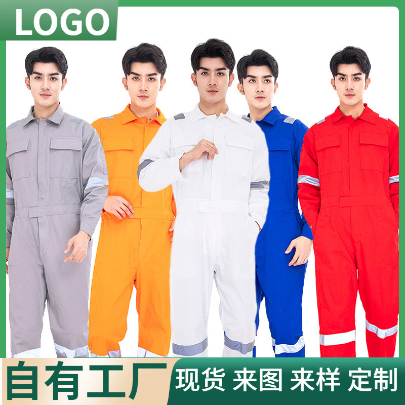 Pakaian kerja satu potong musim semi dan musim gugur lengan panjang perlindungan tenaga kerja setelan strip reflektif tahan aus tahan noda bergaris penjahit jumpsuit kustomisasi