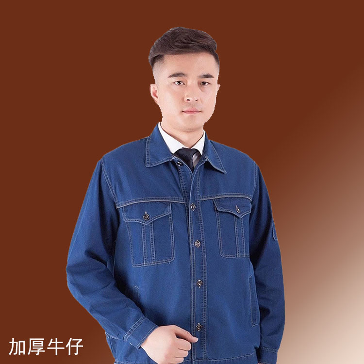 Setelan pakaian kerja las untuk pria, pakaian Denim pelindung tukang las katun murni, pakaian kerja proteksi tenaga kerja, musim semi dan musim gugur