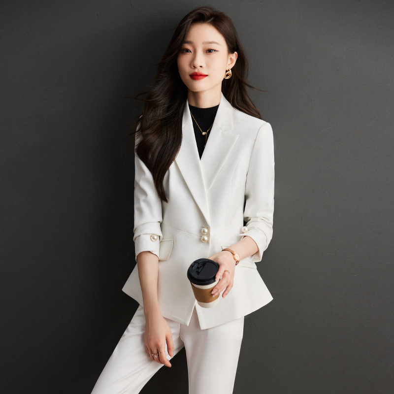 Jaket putih kecil untuk wanita, setelan pakaian kerja profesional, pakaian formal dewi temperamen kelas atas Musim Semi dan Gugur