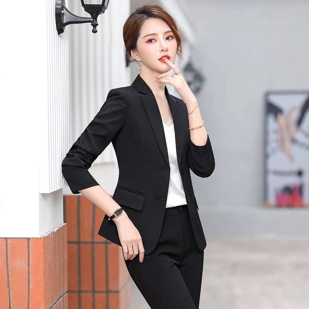 Pakaian Formal wanita profesional setelan bisnis pakaian kerja modis mahasiswa musim gugur dan musim dingin setelan jas hitam jaket wanita ukuran plus