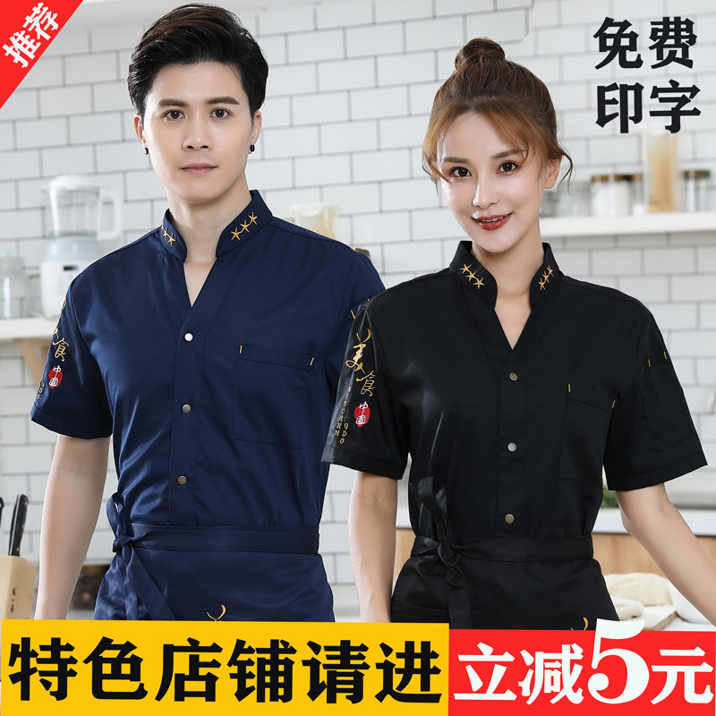 Baju kerja koki katering khusus pria, baju kerja lengan pendek ukuran besar lengan panjang hotel dapur koki pakaian rumus musim panas