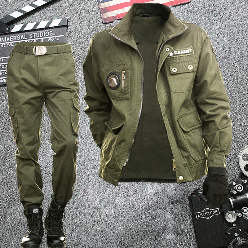 Pakaian Kerja Musim Semi dan Musim Panas Setelan Pakaian Kerja Pria Kamuflase Ekstra Tebal Pakaian Kerja Lengan Panjang Seragam Tentara Pekerja Perbaikan Mobil