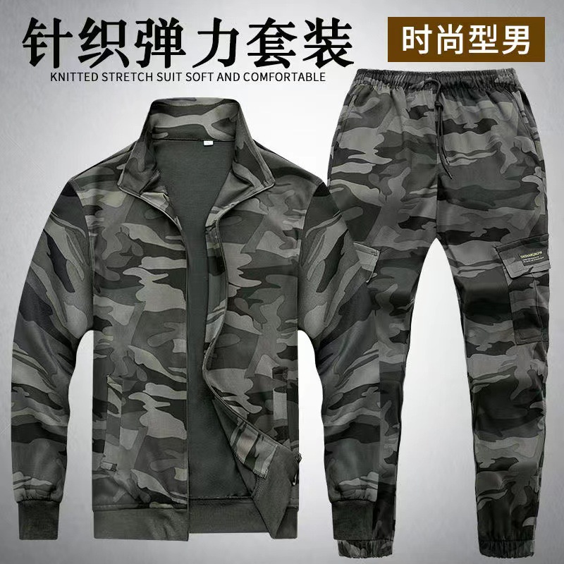 Setelan Pakaian Kerja Kamuflase Elastis Celana Atasan Tahan Aus Longgar Ukuran Besar Pakaian Kerja Jaket Pakaian Pelindung Tenaga Kerja Ekstra Tebal