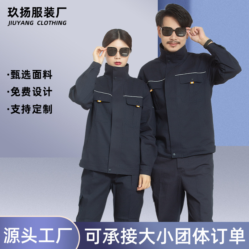 Setelan pakaian kerja katun murni lengan panjang musim semi dan musim gugur untuk pria, pakaian pelindung kerja, tahan aus, strip reflektif lokasi konstruksi pabrik, pakaian kerja Petrokimia Cina