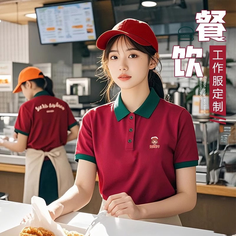 Pakaian Kerja Katering Kaus Kerja Kustom Musim Panas Ayam Goreng Teh Susu Kafe Barbekyu Petugas Toko Hot Pot Pakaian Kerja Lengan Pendek
