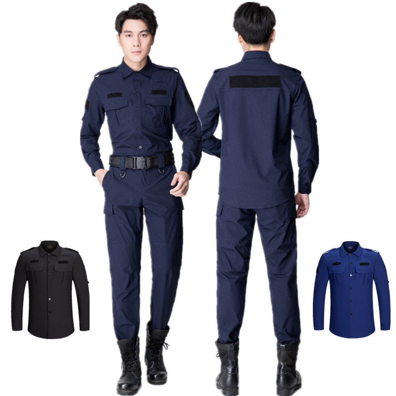Pengiriman gratis baru cepat kering keamanan kerja seragam hitam es sutra tipis lengan panjang setelan biru tipis bekerja