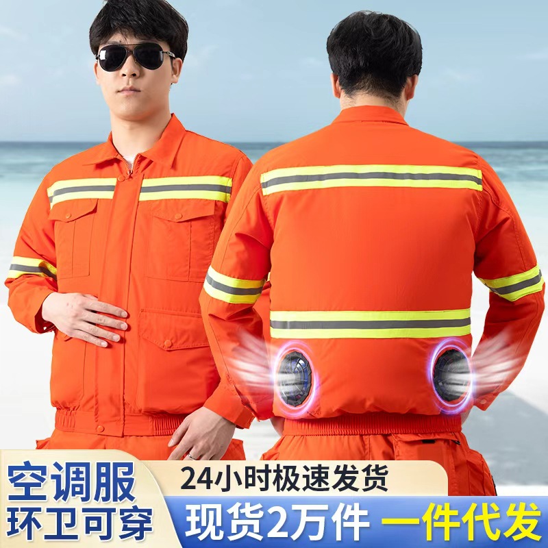 Pakaian kerja, AC pendingin tahan panas baju kipas reflektif strip pakaian kerja dengan kipas perlindungan lingkungan musim panas