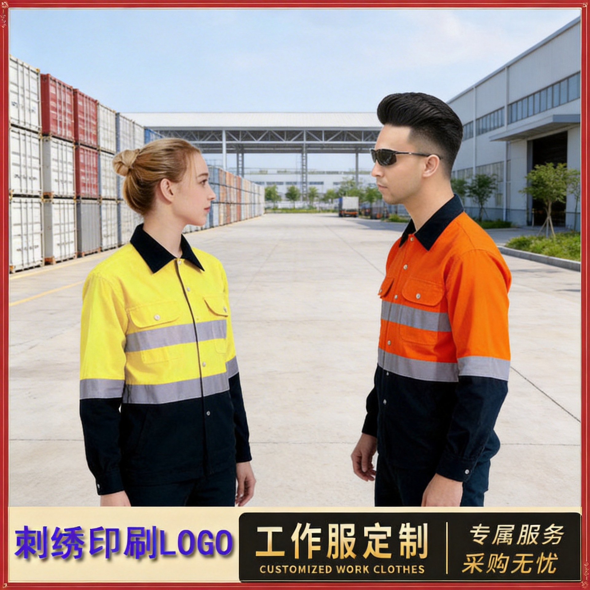 Kemeja kerja reflektif berlengan panjang dari katun murni untuk pekerja tambang batubara, pakaian teknik, pakaian kerja untuk ladang minyak dan pekerja kereta api.