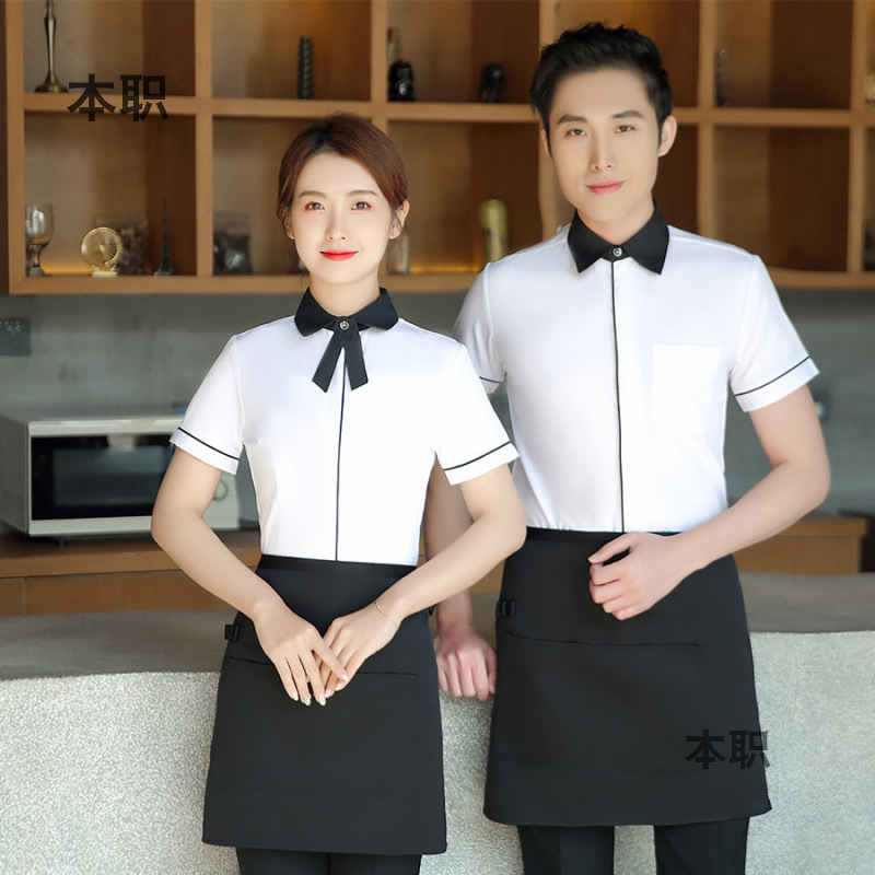 Baju pelayan lengan pendek, seragam kerja pelayan wanita, gaya sama slim-fit, kemeja hotel untuk pria dan wanita musim panas