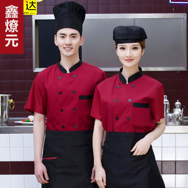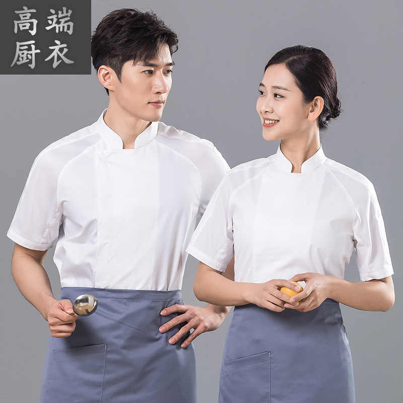 Pakaian koki tipis musim panas, pakaian kerja dapur kantin makan hotel bersirkulasi lengan pendek, pakaian memanggang musim panas pria dan wanita