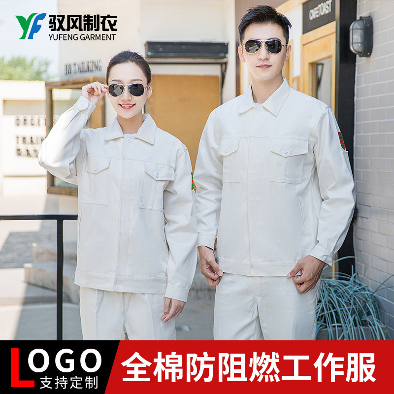 Pakaian kerja las, baju kerja las katun murni putih tahan aus lengan panjang cocok lembut tahan aus
