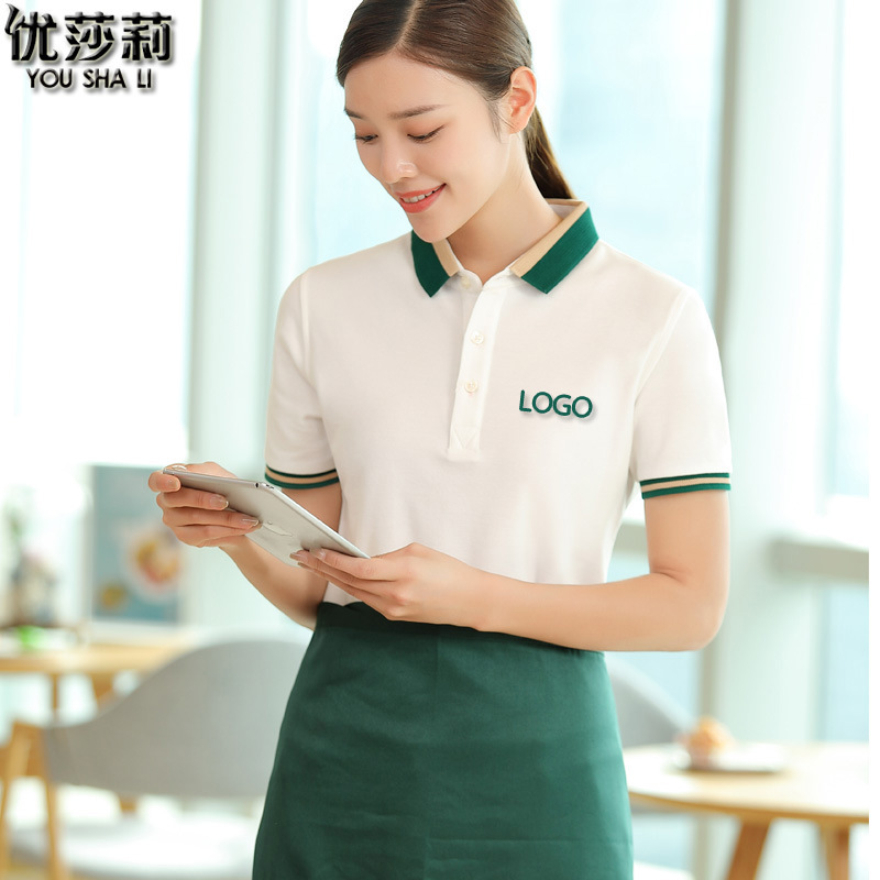 Pakaian kerja pelayan katering, kelas atas T-shirt hotel Kopi musik KTV musim panas kemeja iklan lengan pendek pakaian kerja pembersih