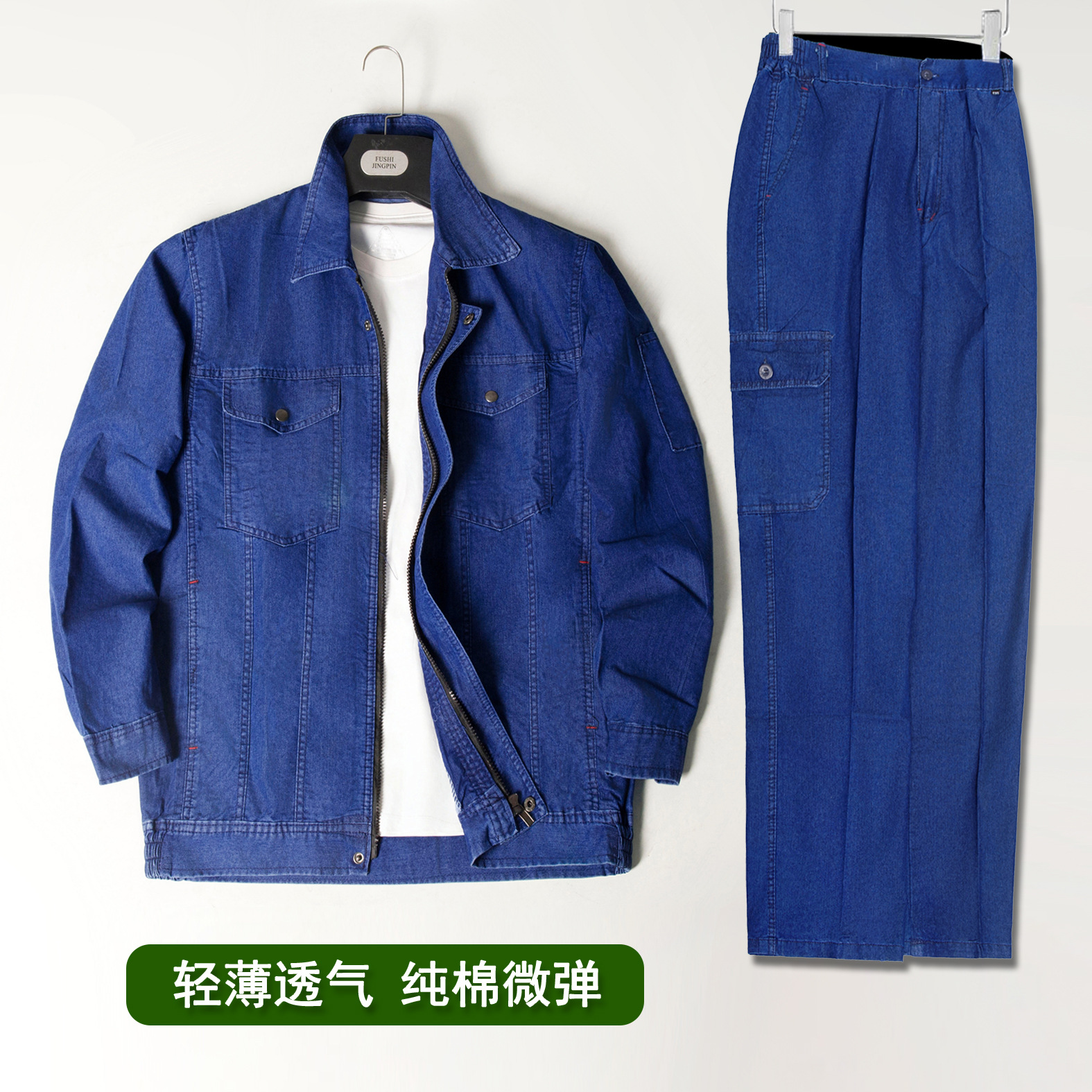 Setelan Pakaian Kerja Denim Musim Panas Pria Lengan Panjang Tipis Katun Murni Tahan Aus Permeabilitas Listrik Tukang Las Pakaian Pabrik Perbaikan