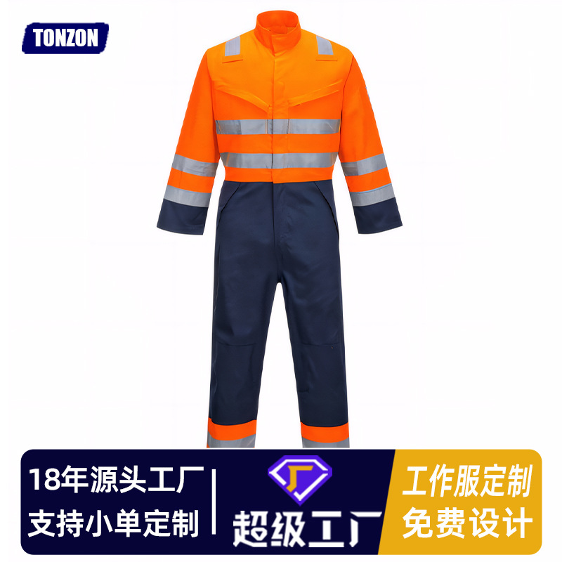Ekspor Perdagangan Luar Negeri Eropa dan Amerika Katun Murni Tahan Api Set Pakaian Kerja Strip Reflektif Tukang Las di Malam Hari