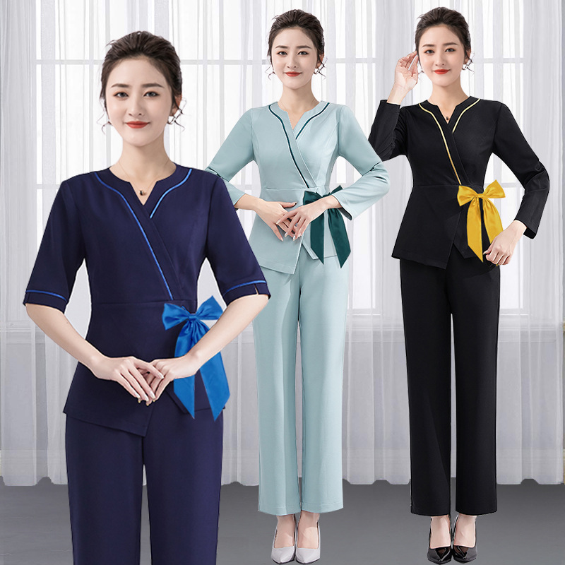 Pakaian teknisi perawatan kaki dan pijat kaki baru, pakaian kerja teknisi spa pembersih telinga yang elegan dan berkelas, gaya Cina baru 785.