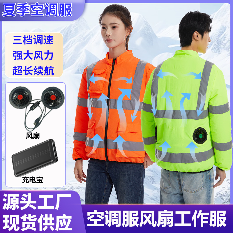 Pakaian AC empat-kipas untuk pria, pakaian pelindung matahari reflektif pendingin musim panas dengan kipas, pelindung tenaga kerja luar ruangan
