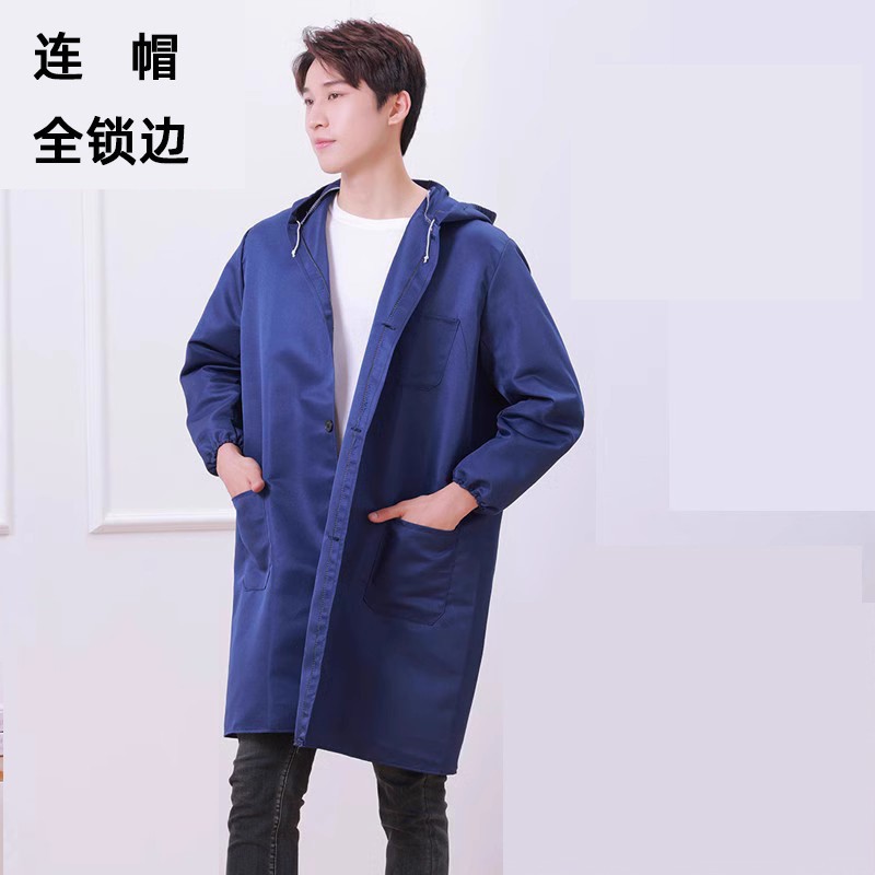 Gamis bertudung anti debu biru, pakaian kerja panjang pelindung tenaga kerja sama empat musim musim