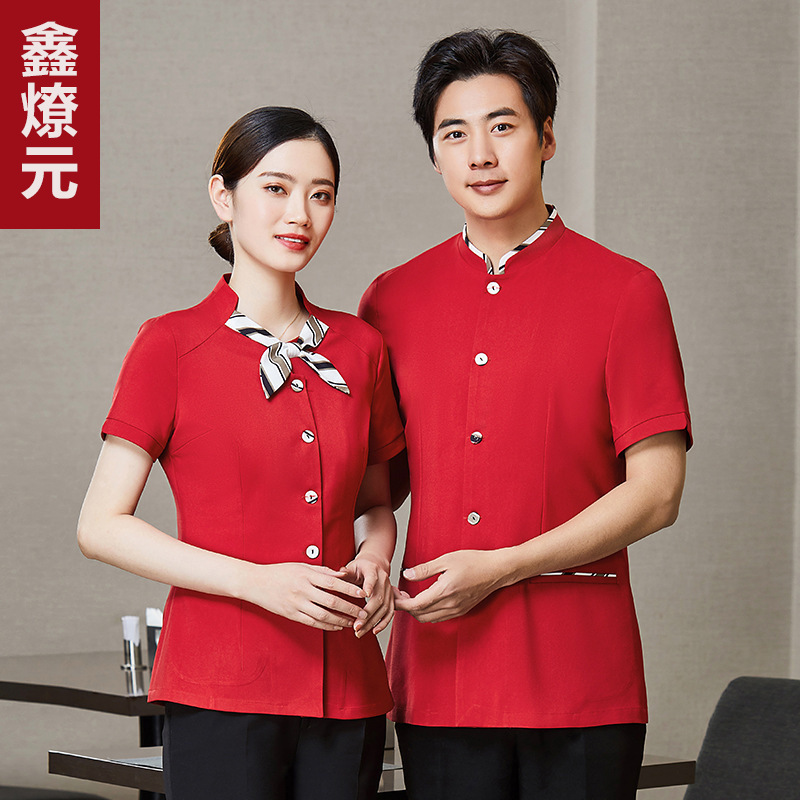 Pakaian kerja pelayan katering pria dan wanita, lengan pendek restoran hotel china rumah teh pakaian restoran pot panas musim panas