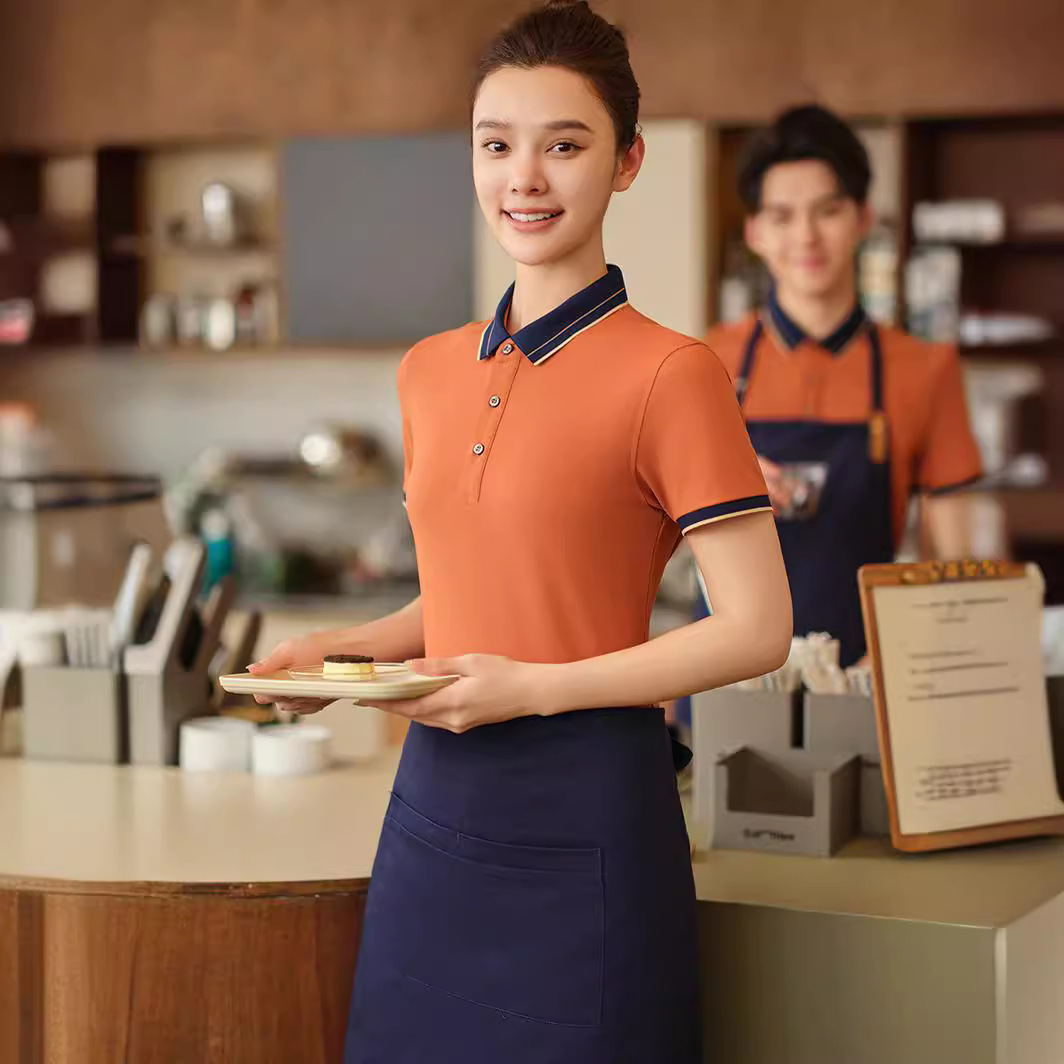 Mulberry kaus lengan pendek untuk kerja, T-shirt hotel lengan pendek, baju kerja polo pelayan toko barbekyu, panci panas restoran makanan cepat saji