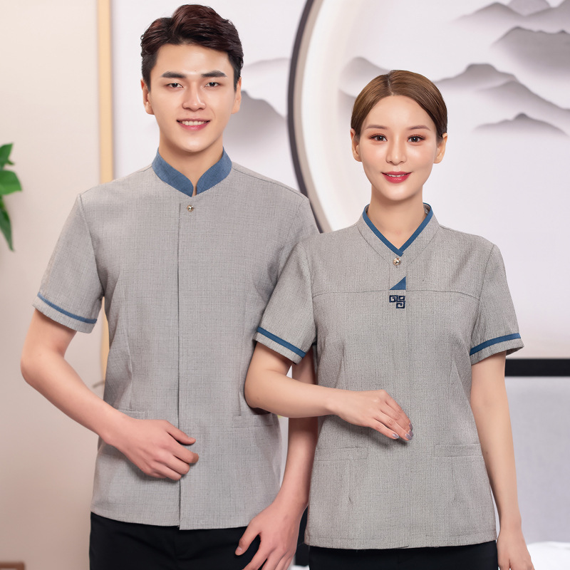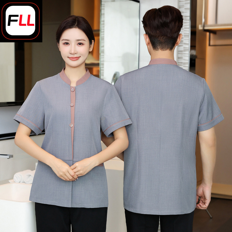 Pakaian kerja pembersih ruangan hotel kelas atas pakaian musim panas perusahaan properti rumah tangga perawatan rumah pakaian pembersih lengan pendek