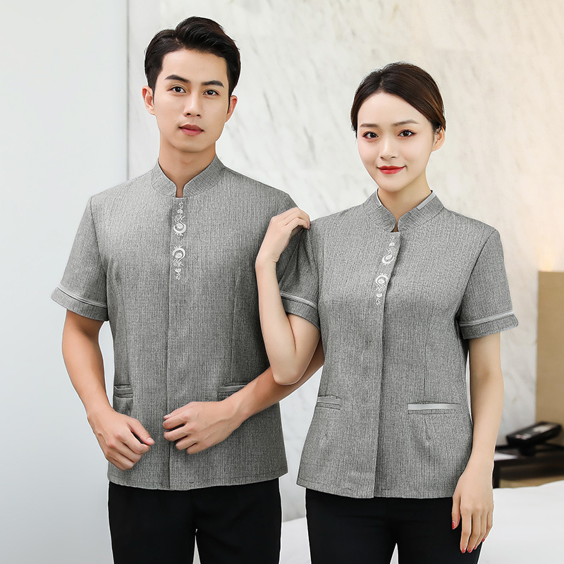 Pakaian pembersih kerja ruang Hotel kaus musim panas properti pembersih hotel Hotel pakaian pembersih bersirkulasi lengan pendek
