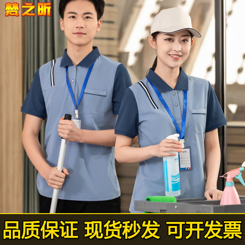 Pakaian Kerja Pembersih Taman Cetak Logo Musim Panas Lengan Pendek T-shirt Hotel Properti Rumah Tangga Pakaian Kerja Pembersih Model Baru