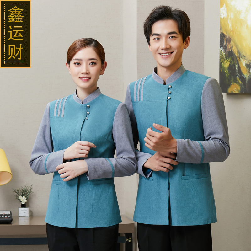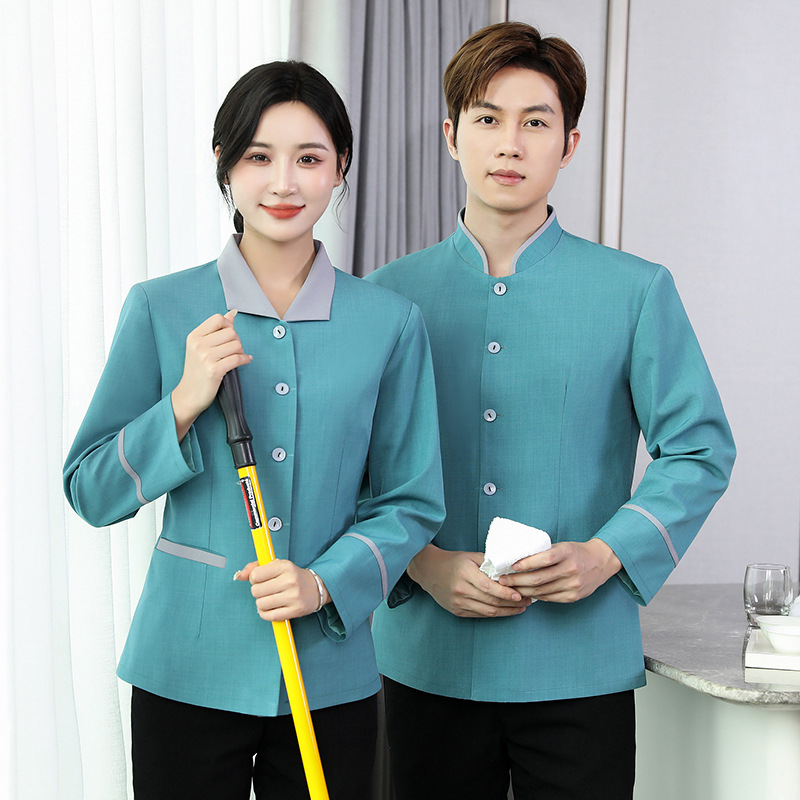 Pakaian kerja pembersih Hotel Pria Wanita, lengan panjang properti pembersih kamar bibi pakaian rumah tangga musim gugur dan musim dingin pakaian kerja pria Hotel