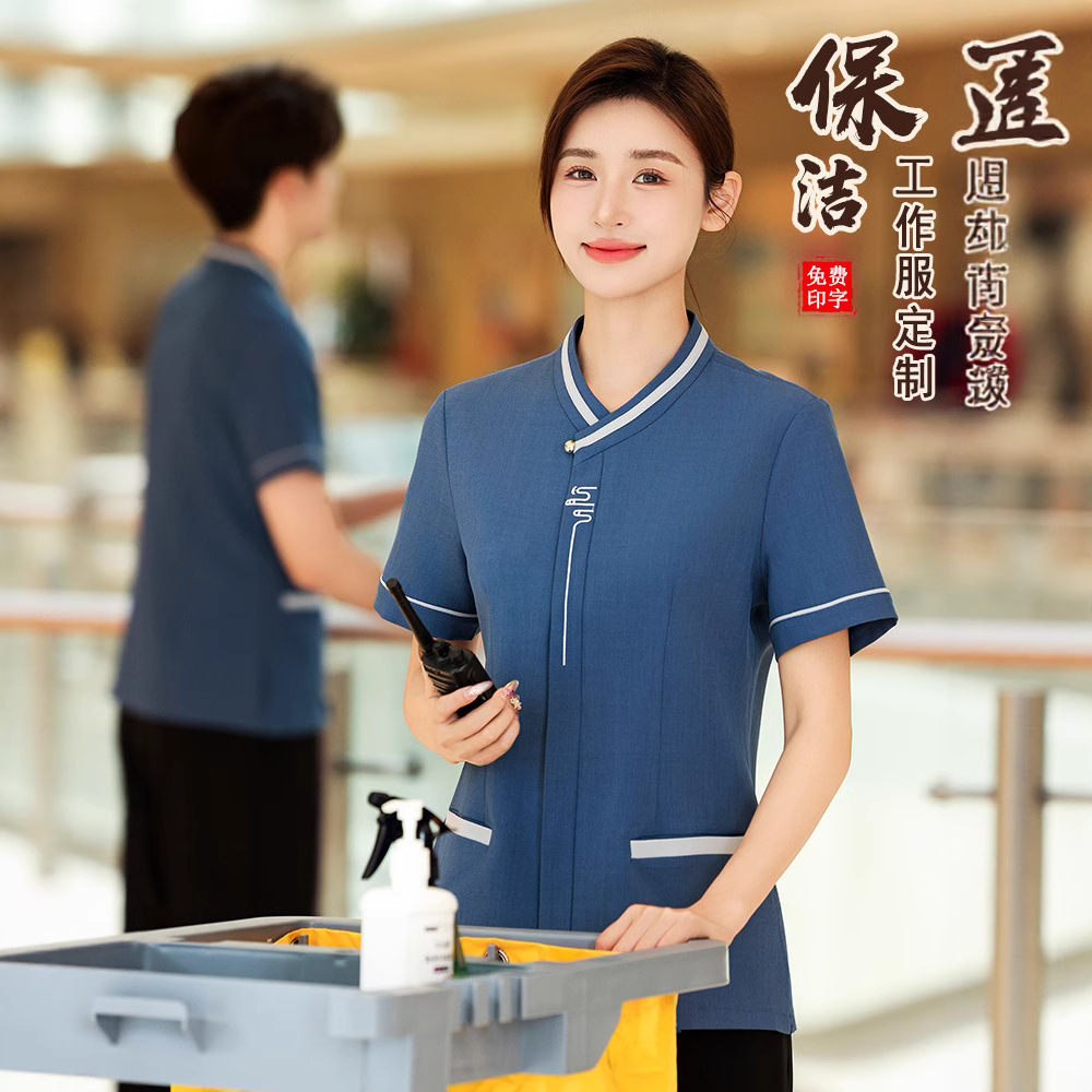 Pakaian Kerja Pembersih Linen High-end Pakaian Kerja Bibi Pembersih Properti Komunitas Kamar Hotel Lengan Pendek Model Musim Panas Wanita