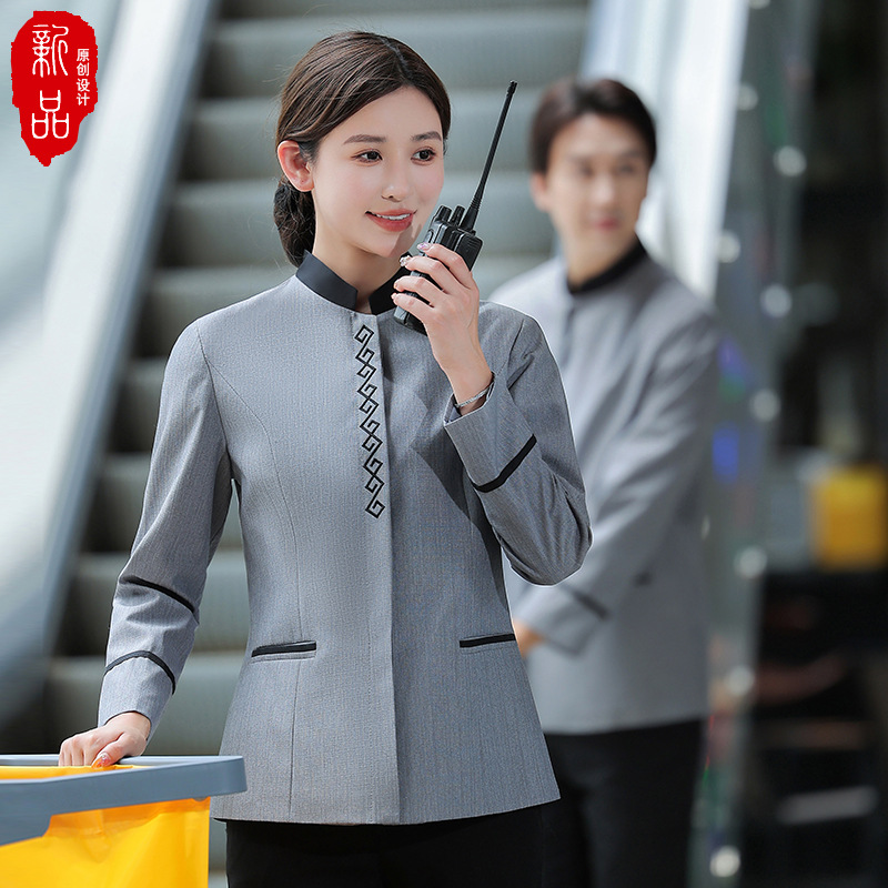 2022 pakaian pembersih lengan panjang musim gugur dan musim dingin perusahaan lapel properti supermarket pakaian kerja pembersih lantai seragam pembersih kamar