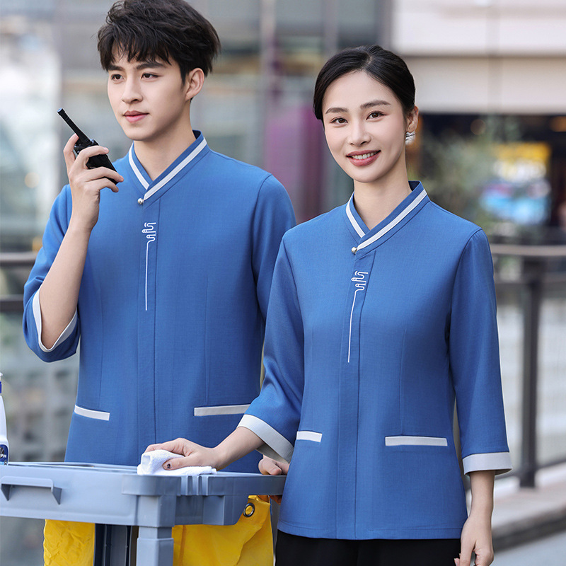 Pakaian kerja kebersihan, lengan panjang properti rumah tangga, pakaian pembersih logistik perusahaan, pakaian Hotel, ruang tamu, setelan pria dan wanita musim gugur dan musim dingin