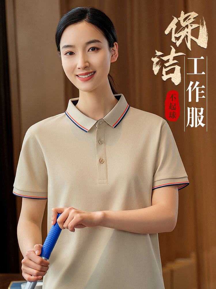 Pakaian kerja pembersih Hotel lengan pendek, pakaian musim panas logistik pencuci piring ruang tamu menyapu bibi sanitasi P & G staf PA