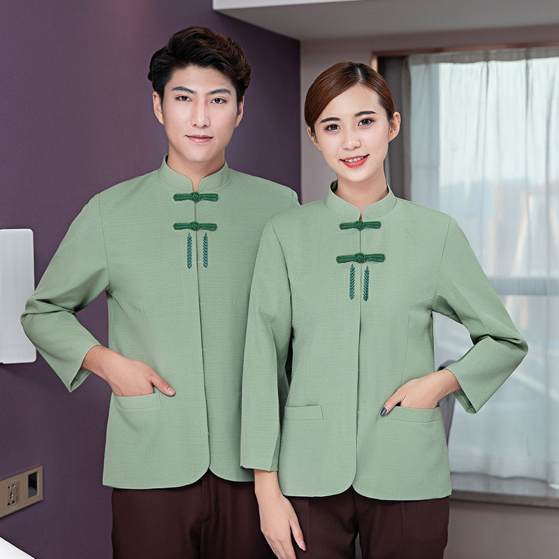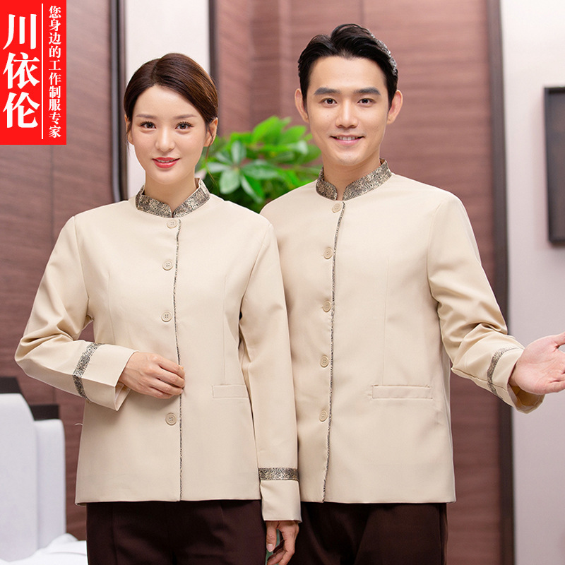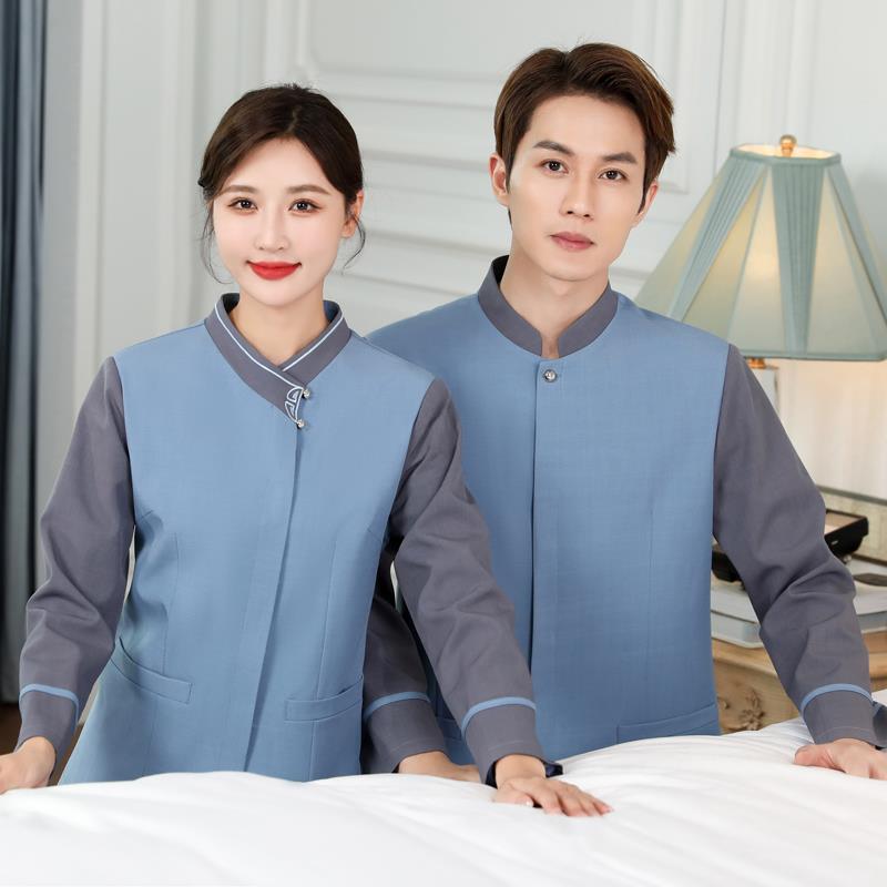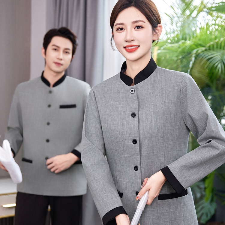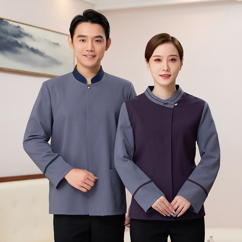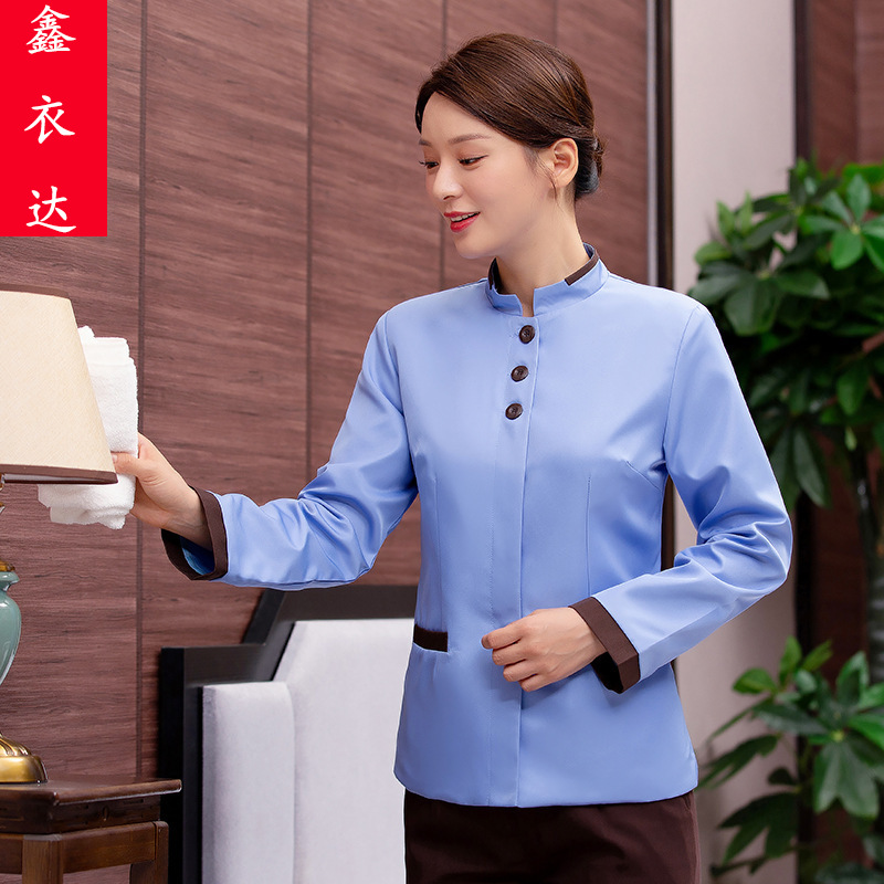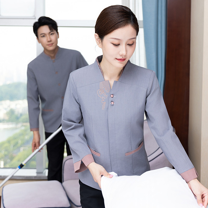 Kerah miring membersihkan pakaian kerja lengan panjang wanita musim gugur dan musim dingin bintang hotel kamar bibi pembersih departemen penjualan properti Pria
