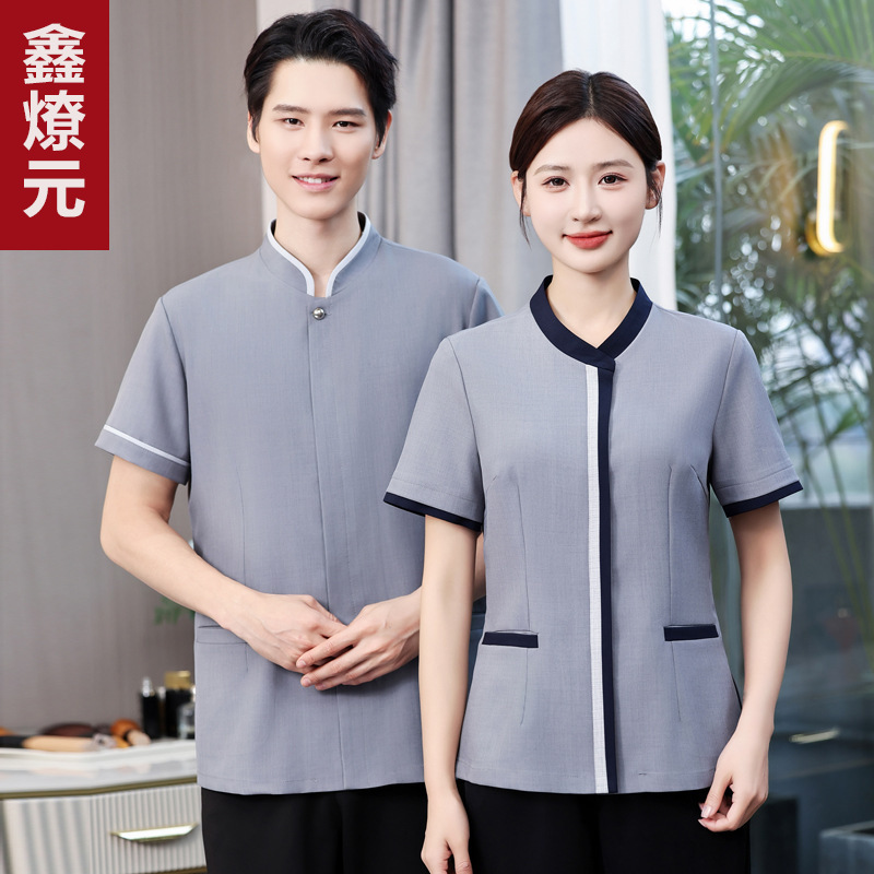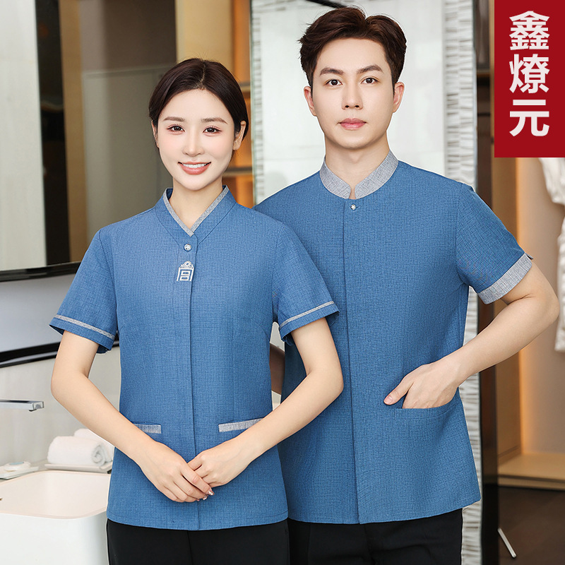 Pakaian pembersih lengan pendek pakaian musim panas PA hotel ruang tamu hotel pembersih bibi properti membersihkan pakaian kerja pakaian lengan pendek wanita