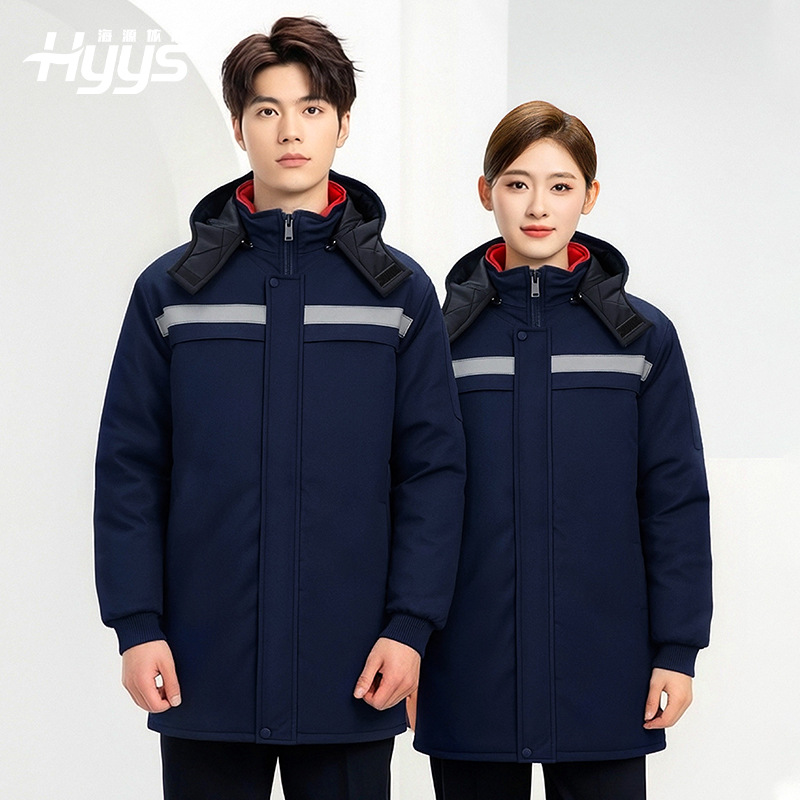 Jaket bantalan katun tebal tahan dingin berlapis bulu musim dingin produsen strip reflektif pekerja pembersih properti katun jaket berlapis tebal kustomisasi pakaian kerja