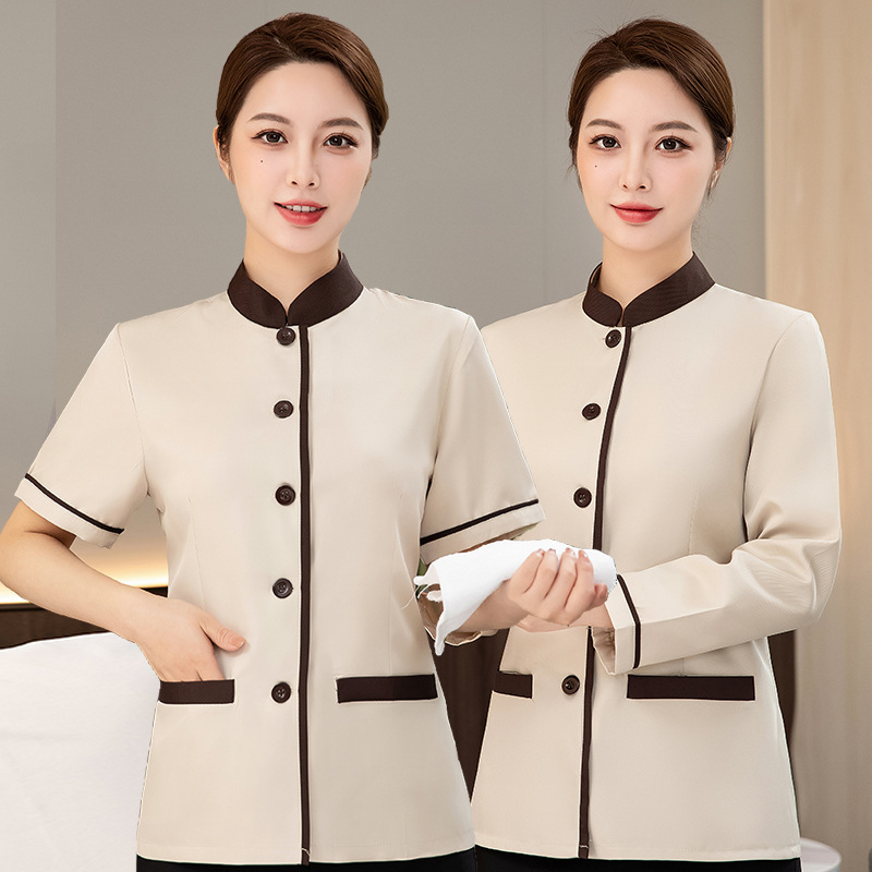 Pakaian Kerja Staf Pembersih Kamar Hotel Properti Lengan Pendek Pakaian Bersih Bibi Pakaian Kerja Pembersih Lengan Panjang Musim Semi dan Musim Gugur