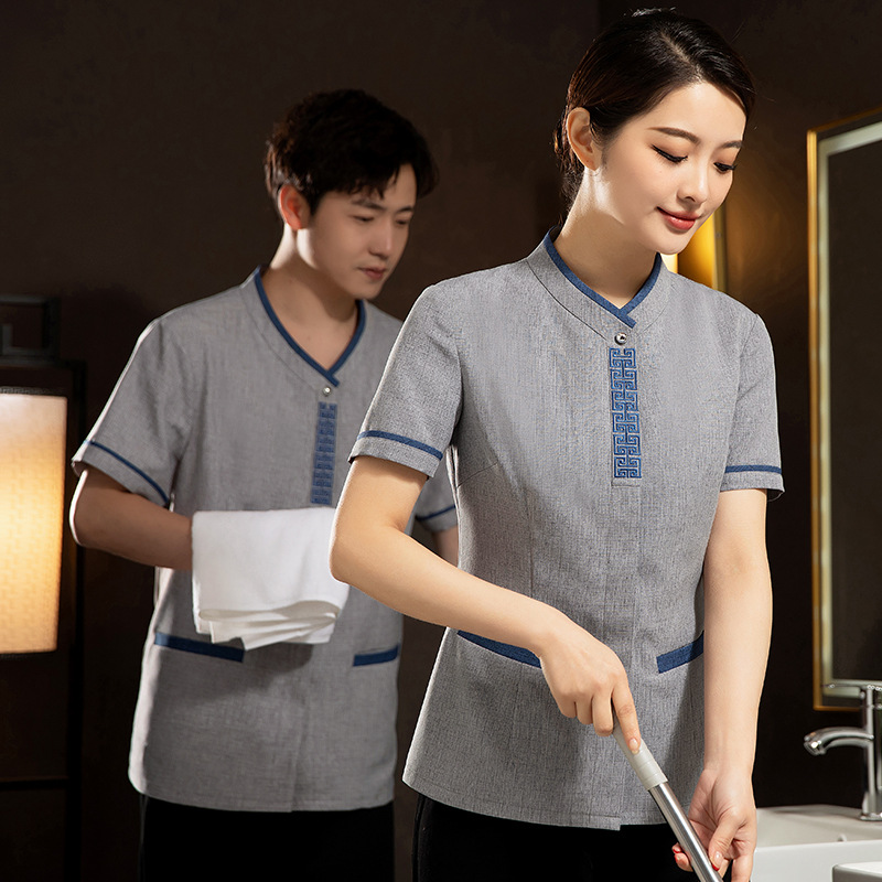 Pakaian Kerja Pembersih Kamar Lengan Pendek Rumah Tangga Wanita Kantor Penjualan Rumah Tangga Tempat Belanja Pakaian Pembersih Gaya Tiongkok Pakaian Musim Panas