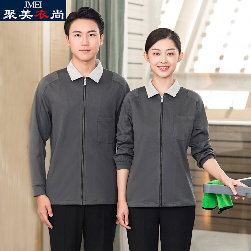 Pakaian pembersih lengan panjang untuk pria wanita, pakaian pembersih hotel ruang tamu rumah sakit, mall, properti pembersih pakaian kerja musim gugur dan musim dingin