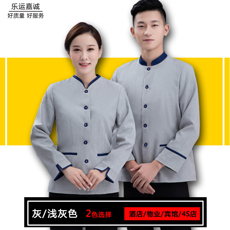 Seragam kerja pembersih hotel lengan panjang untuk wanita, pakaian musim gugur dan musim dingin, set seragam manajer properti mal, seragam pembersih properti.