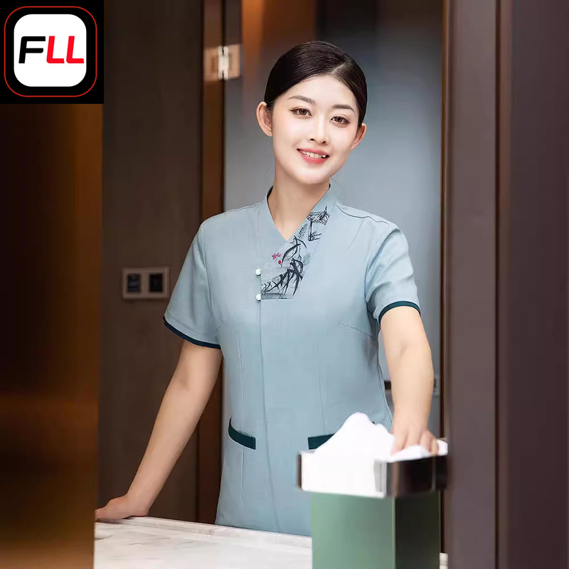 Model Baru Musim Panas Lengan Pendek Hotel Pembersih Kamar Rumah Tangga Pakaian Kerja Hotel Bibi Hotel Pakaian Kerja Pelayan Gaya Tiongkok